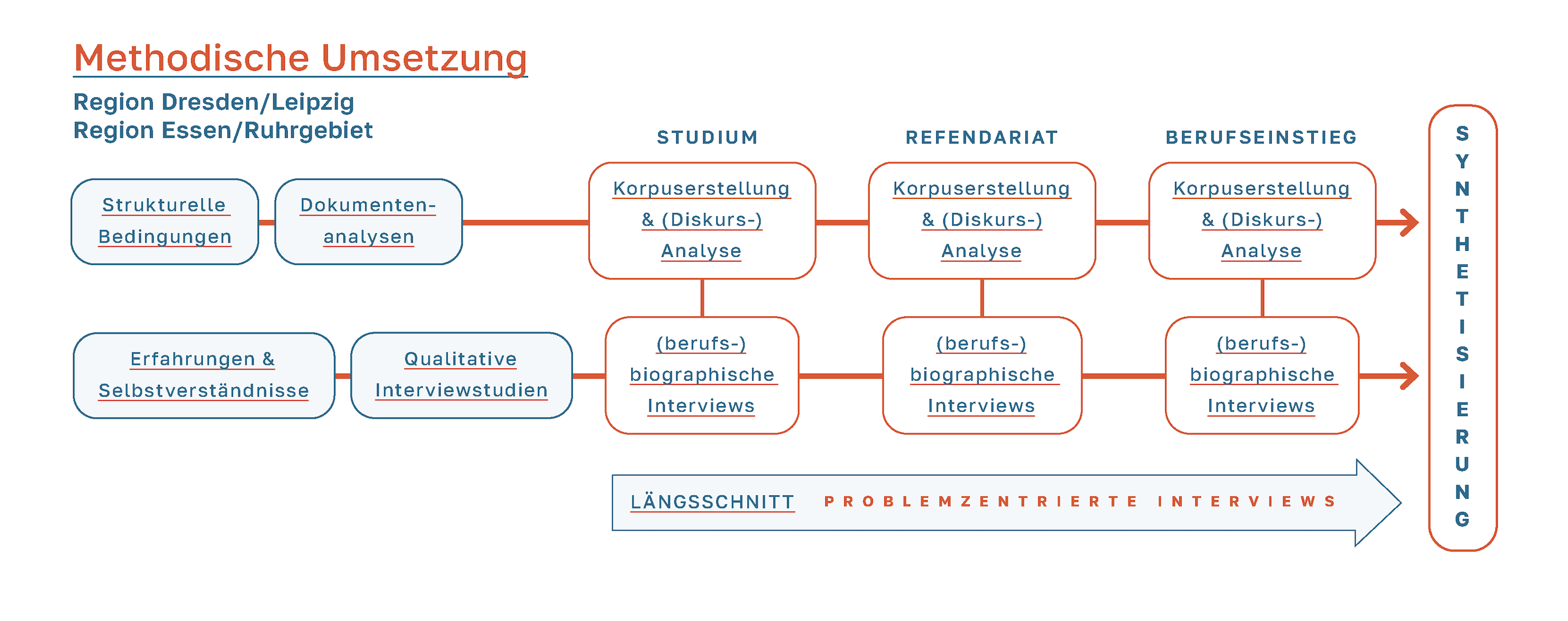 Die Nachwuchsgruppe führt eine grundlegende rassismustheoretische Untersuchung der drei Phasen der Lehrer:innenbildung mit Blick auf rassismusrelevante Strukturen und Momente der Lehrer:innenbildung durch. Die strukturellen Bedingungen werden in Form einer diskursanalytischen Dokumentenanalyse rekonstruiert. Zur Rekonstruktion der Erfahrungen und professionellen Selbstverständnisse von (angehenden) Lehrer:innen werden in allen drei Phasen an zwei Untersuchungsorten berufsbiographische und problemzentrierte Interviews durchgeführt. Die Studie ist in einem Längsschnittdesign angelegt, was bedeutet, dass einige der eingangs befragten Studierenden auch im Referendariat und Berufseinstieg begleitet werden.